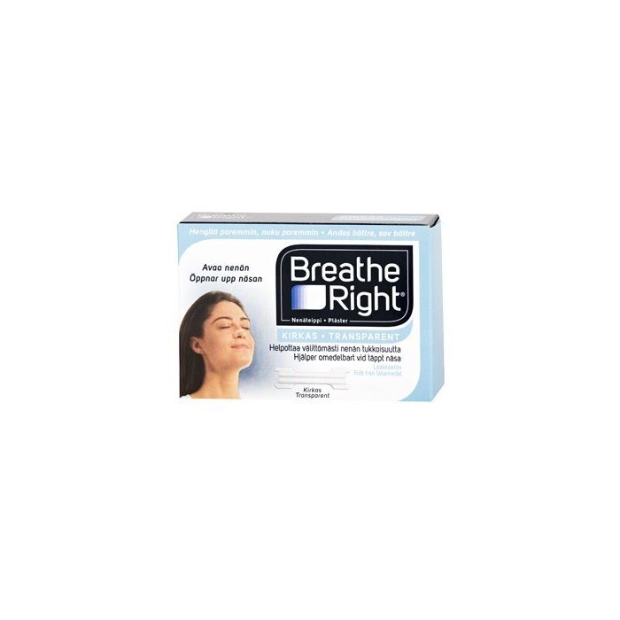 Breath Right -nenäteippi helpottaa välittömästi nenän tukkoisuutta. Helpottaa välittömästi seuraavista syistä johtuvaa nenän tukkoisuutta: allergiat, vilustuminen, poikkeama nenän väliseinässä. Kohottaa nenän tiehyeitä, jolloin jopa 31%:a ennemmän ilmavirtausta.